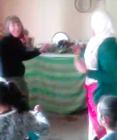 After our meal, eaten with no cutlery, in a different, equally beautiful room, whilst sitting on softly upholstered, ground level seats, at low level tables, I was dragged away by mum. The women and children had cleared the kitchen and it now it became a disco. And we danced.