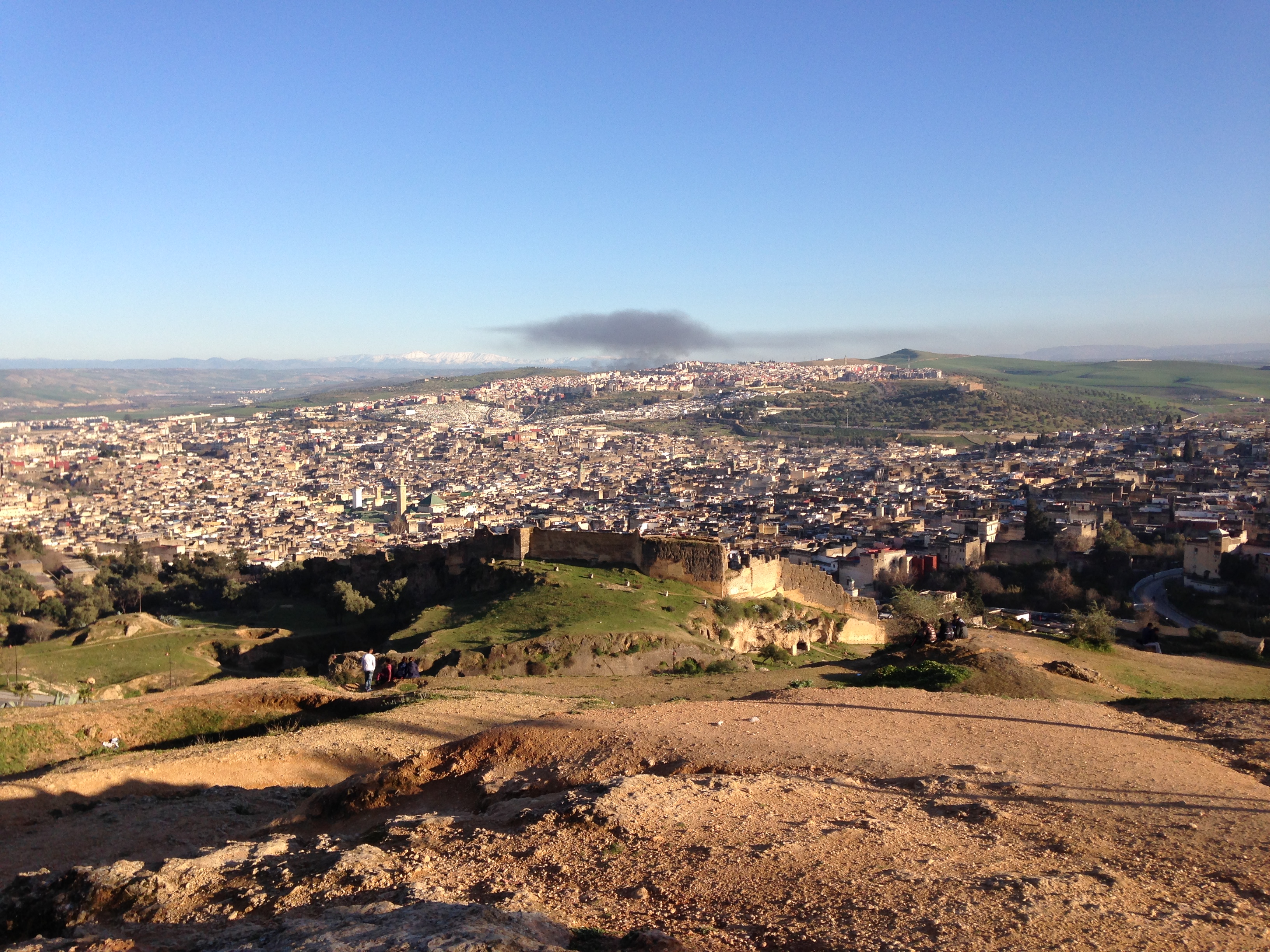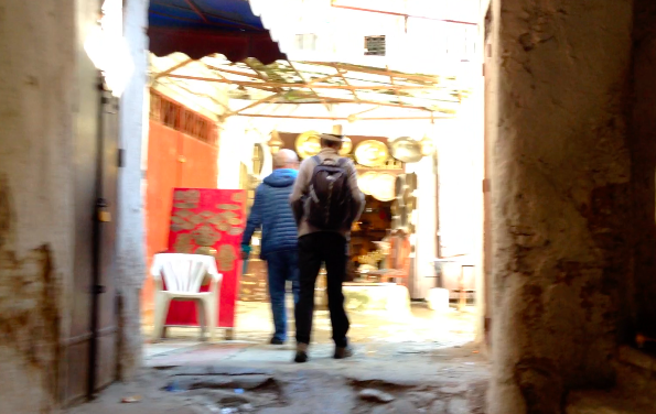 From the high ground to the north of the medina the three cities of Fes can be seen. The University area with its’ rash of cranes and building projects, modern football stadium and new, free access, teaching hospital. The ultra modern business zone, a glass and concrete crenelated skyline. Finally the old city, with it’s Medina, like a dull pimple, barely rising from the sprawling town, looking like the contents of an enormous bag of so many white and earthy coloured Lego bricks dropped onto the valley floor by a careless child. The boundaries between dwellings are indistinct; the narrow passages separating them indiscernible from this distance.