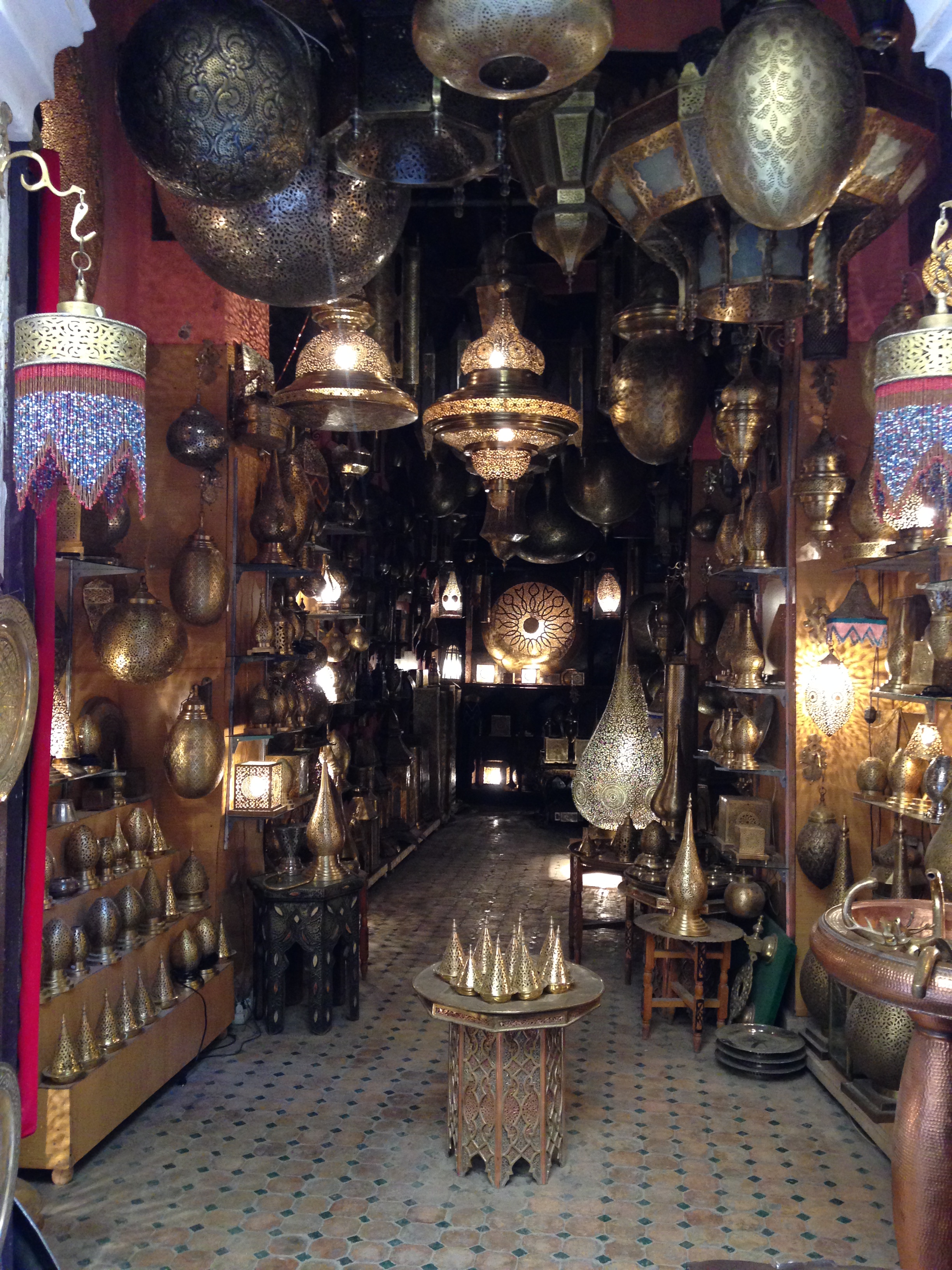 Another ‘inn’ is now used by artisans as light and sunny workshops, where the ubiquitous pierced brass lamps were being made in every shape and size by men sitting on the floor and using the simplest of hand tools. These inns are accessed through uncompromising narrow arches in otherwise blank walls. To poke your head through one of these entrances takes a certain amount of nerve; it feels like a transgression into a private area.