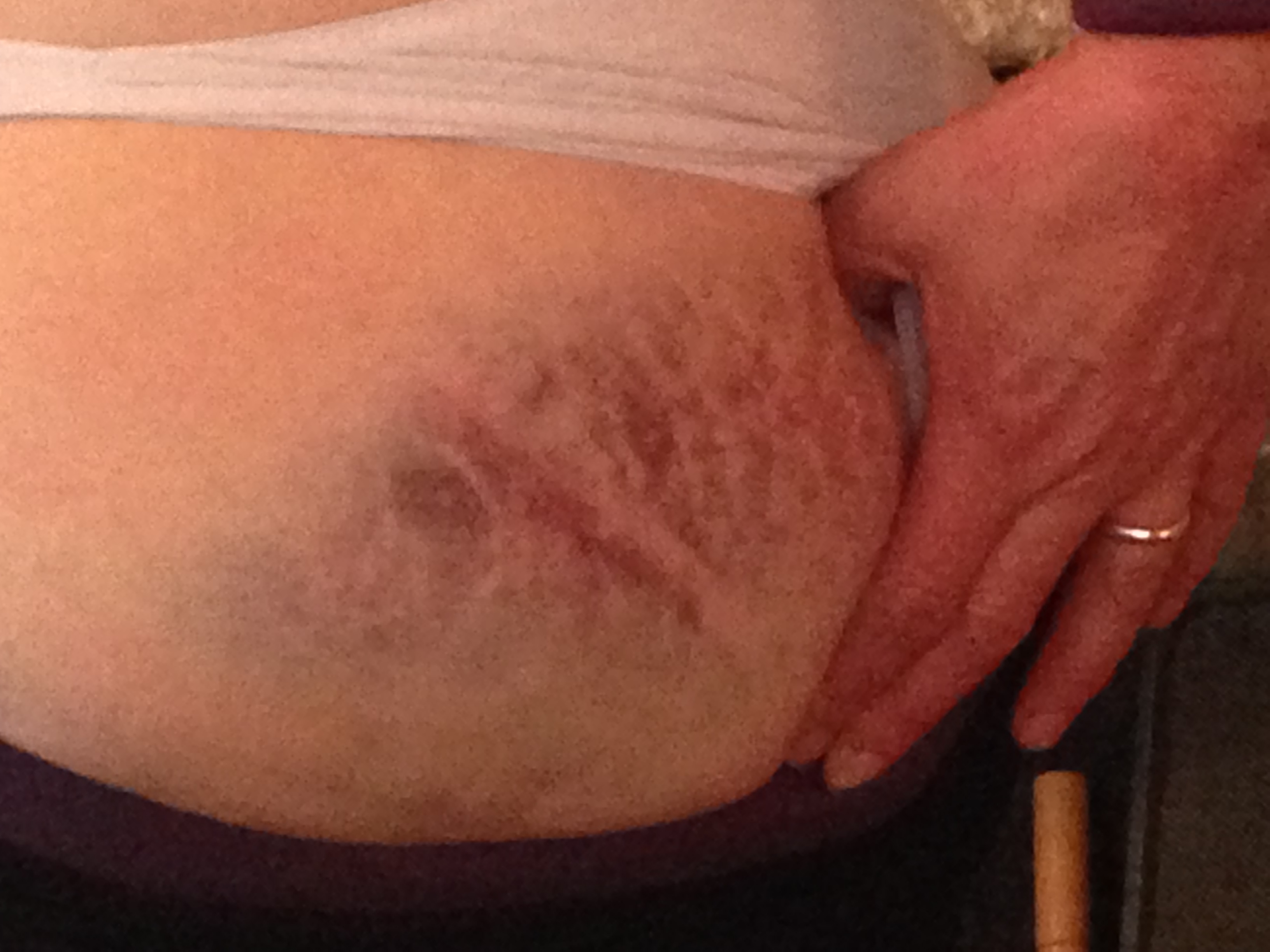 She fell all the way to the bottom of the staircase, on her bottom. 8/10 for effort Cath and a 9/10 for the quality and range of that bruise.