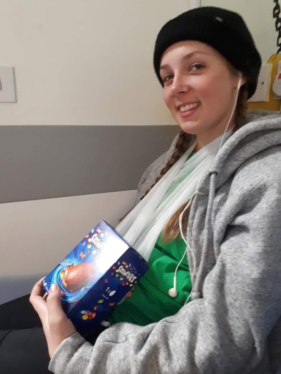 Kyra had decided that she could get a high score with just a smidgen more speed and landed on her shoulder. Luckily it was the penultimate day. Cafe culture was her new sport. 10/10 for a stylishly spectacular crash and 10/10 for having to wear a sling and for having a ‘proper’ injury.