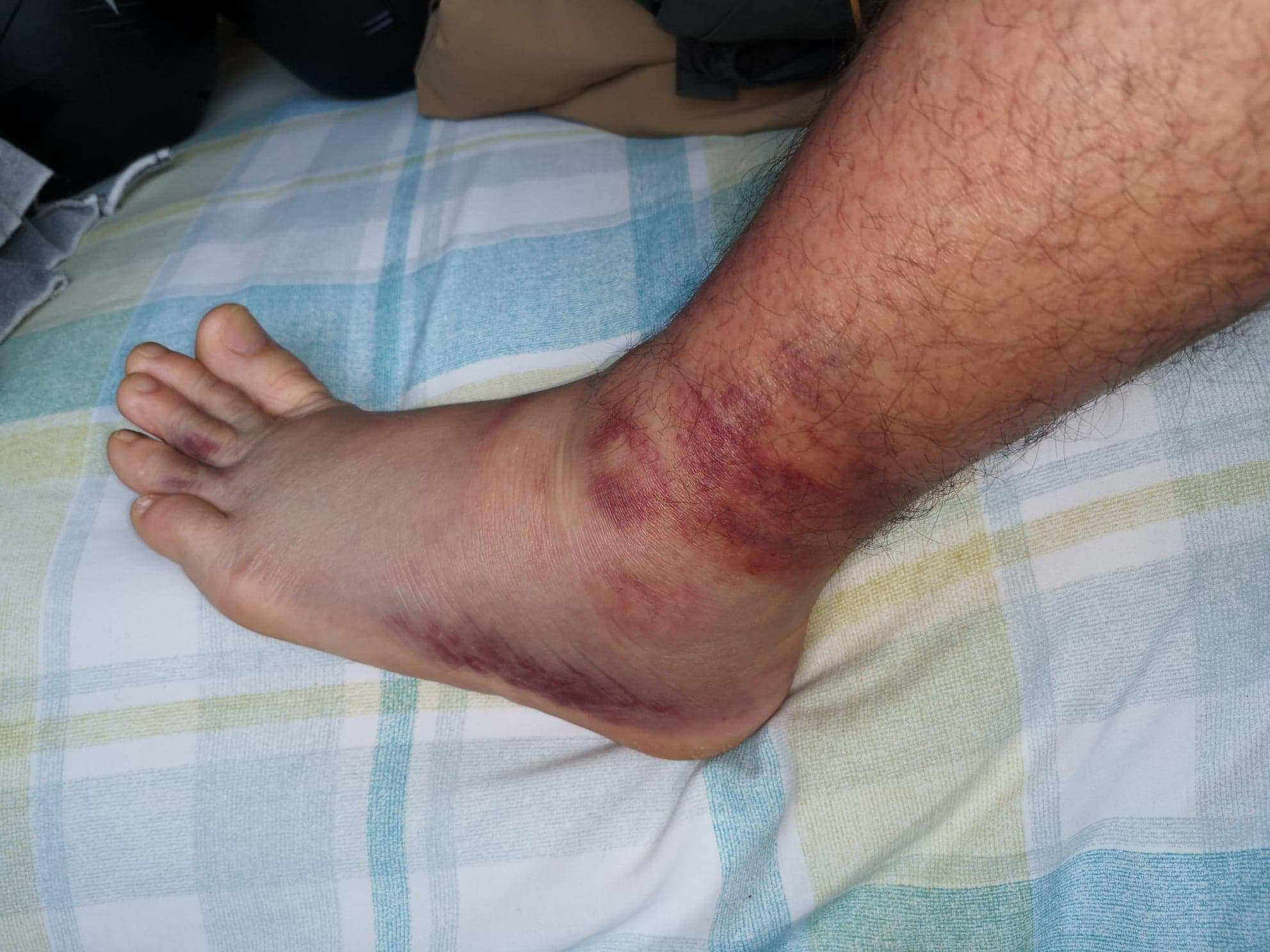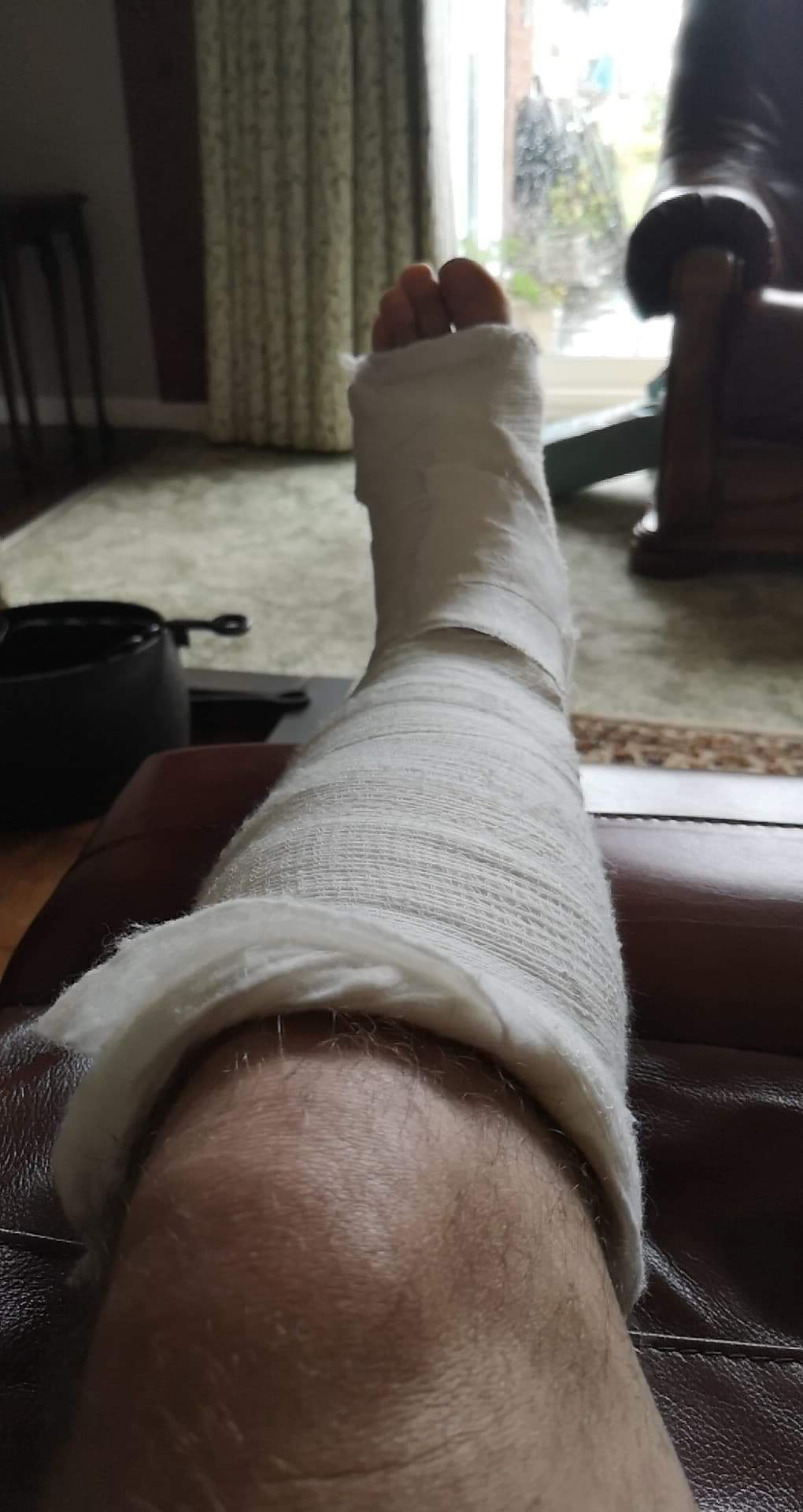 Wally only had to walk from the living room to the bedroom to sustain an injury. One busted up toe as he stubbed it on a shallow black step in a very black hallway. 1/10 for not taking enough water with it and 7/10 for an impressive mess of a toe; the bruise was good too. Switch the light on next time.