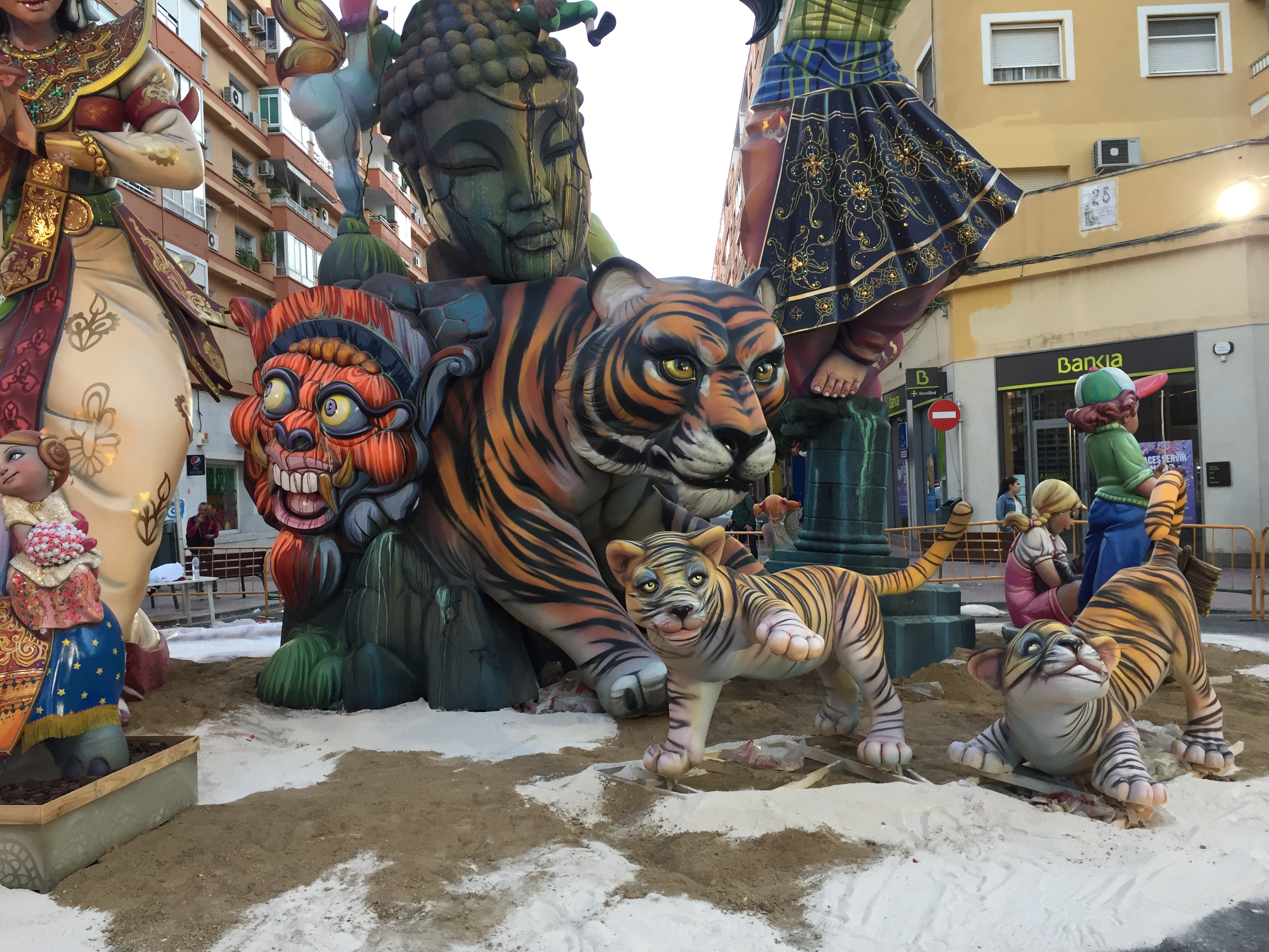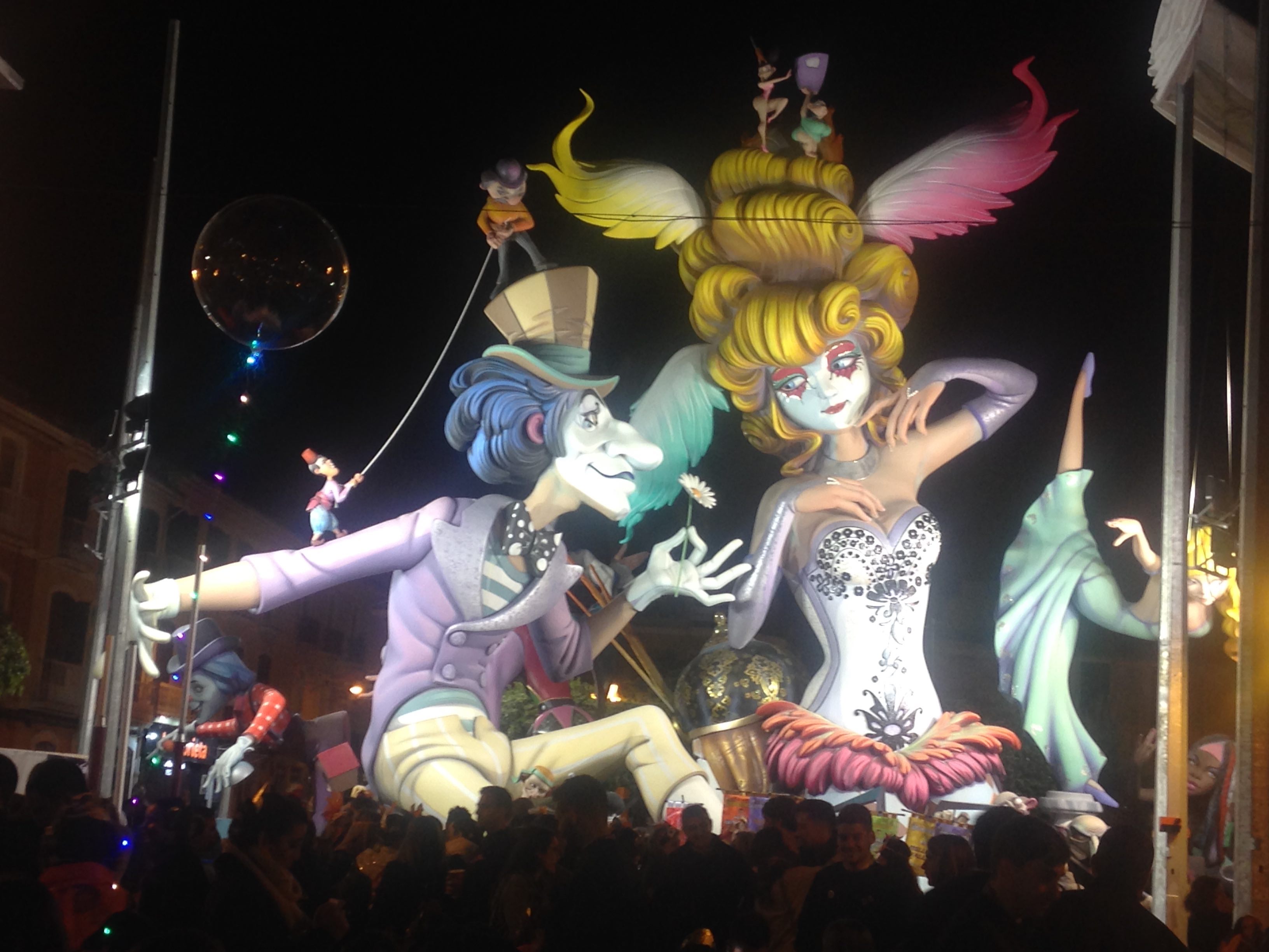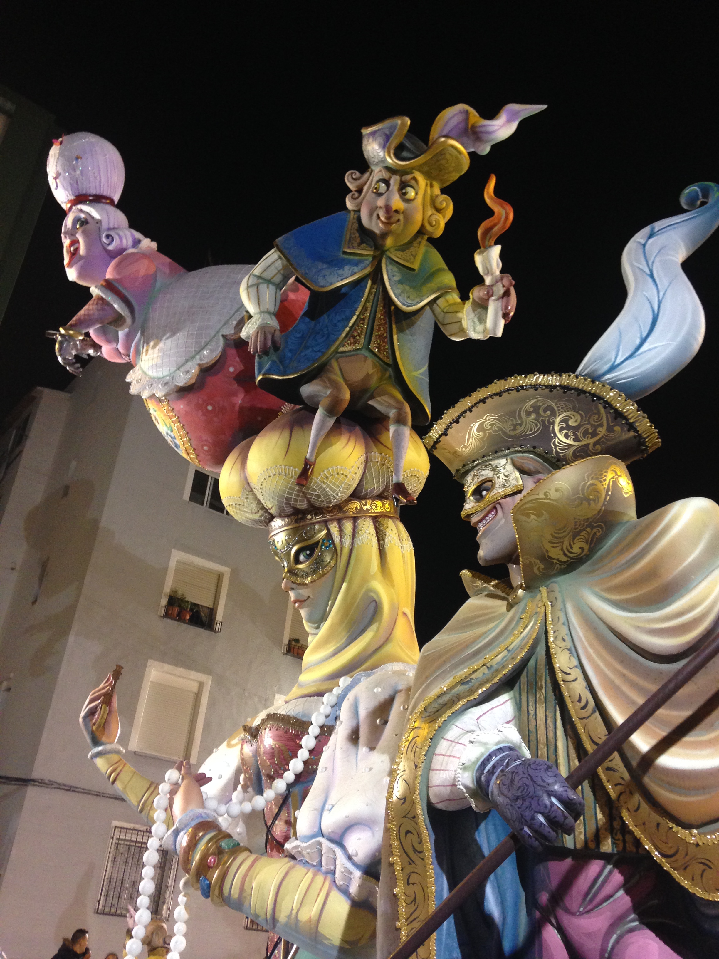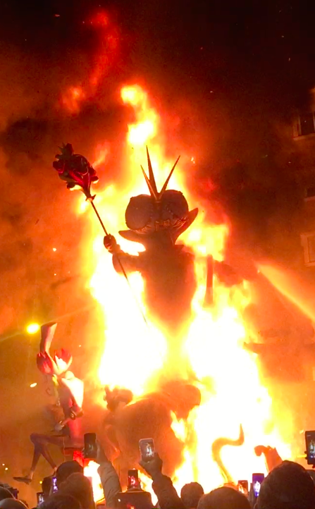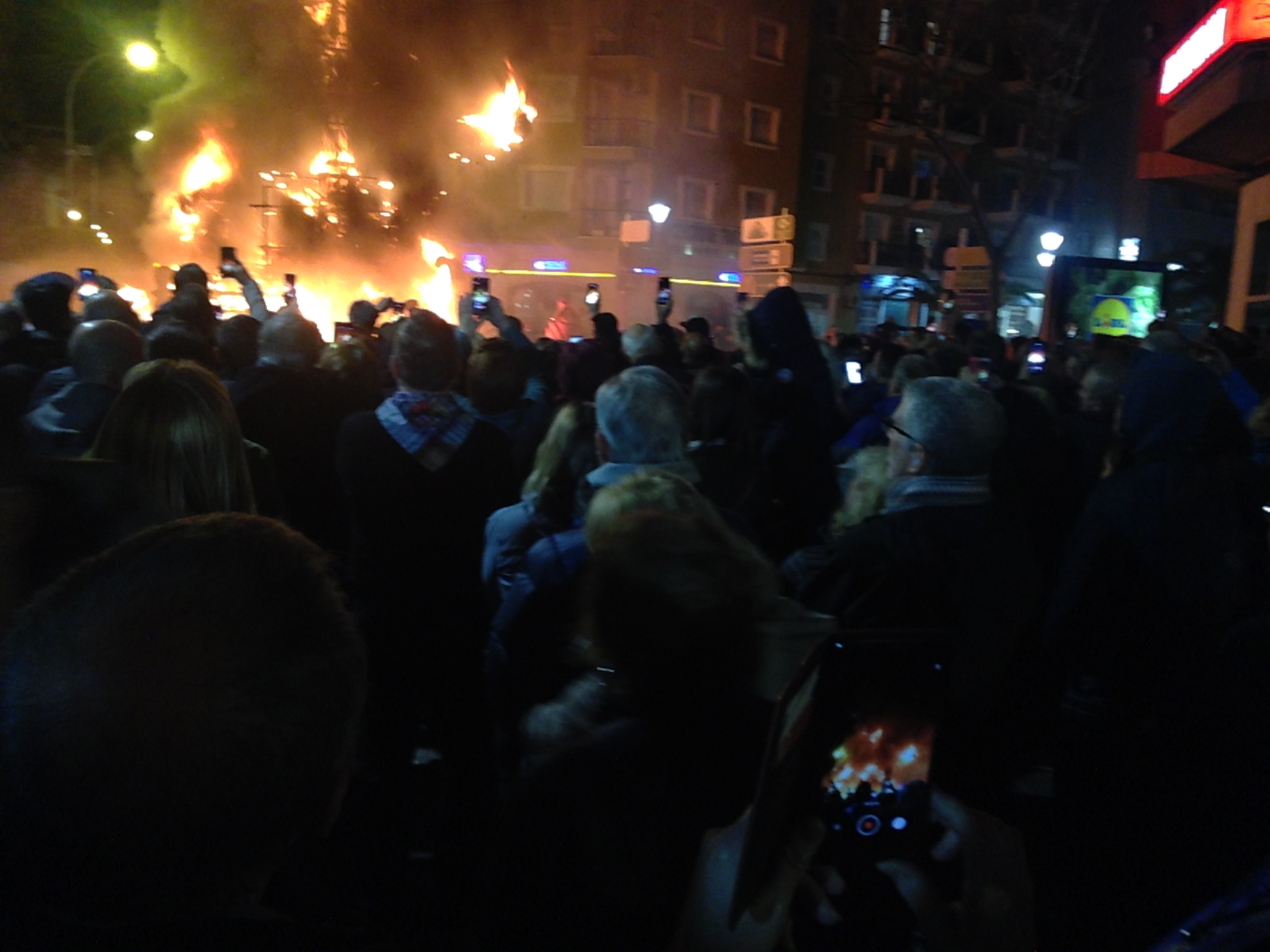 The bonfire part of the Fallas festival. Each area of the town makes a display, some massive, others modestly sized and places it in the heart of their district. After judging, the best model is saved from the flames for future exhibitions; the rest are reduced to ashes, one gorgeous display at a time. The burnings last until the small hours of the morning.