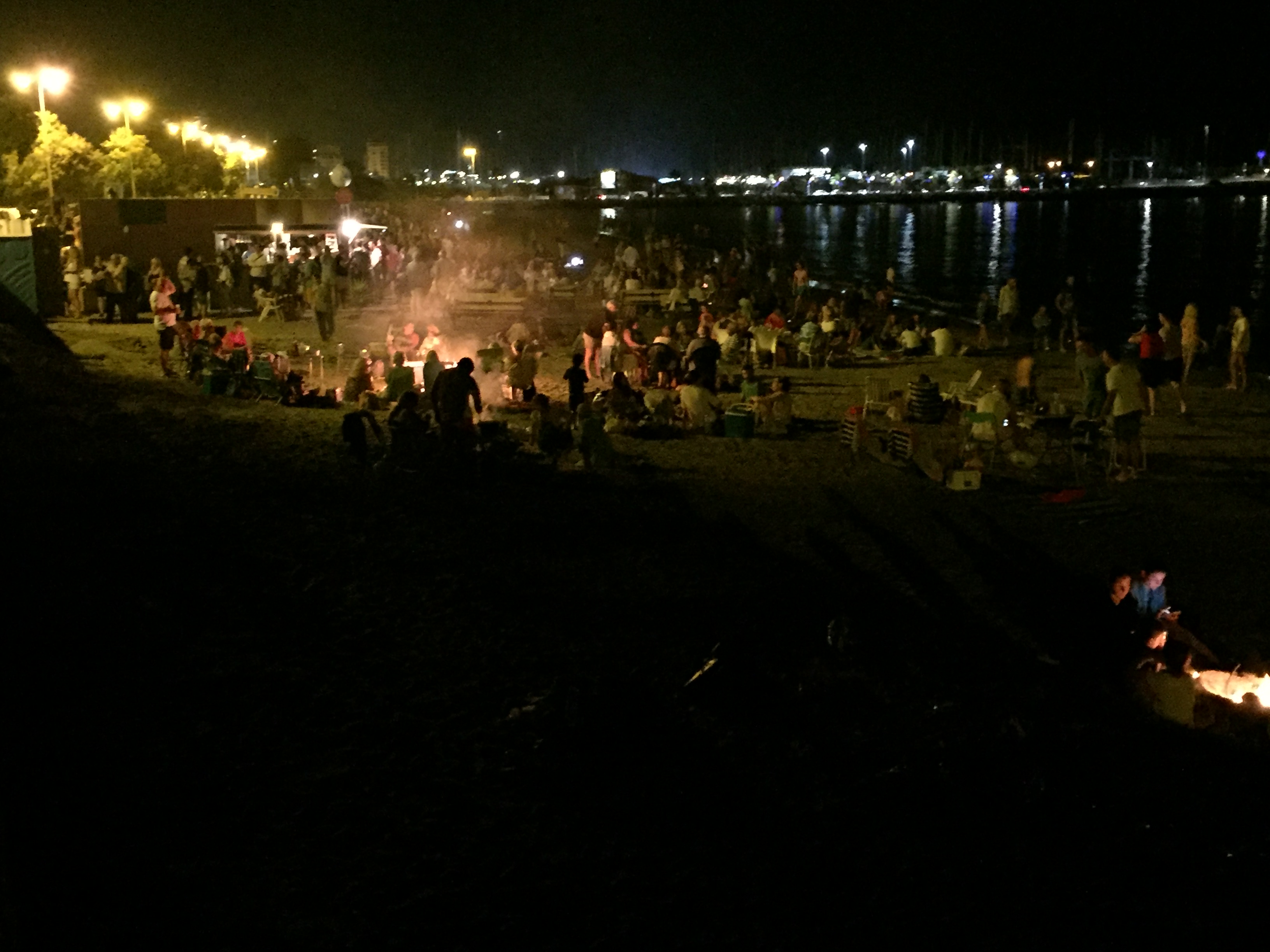 Starts after dark. The beach cafe has food and live flamenco music, where the locals dance a parred down, deeply sensuous flamenco. Most people eat al fresco on the sandy beach, beside small bonfires. People swim. It is over by about 11pm. The next morning all evidence has gone. It is as if all was a beautiful mid summer nights dream.