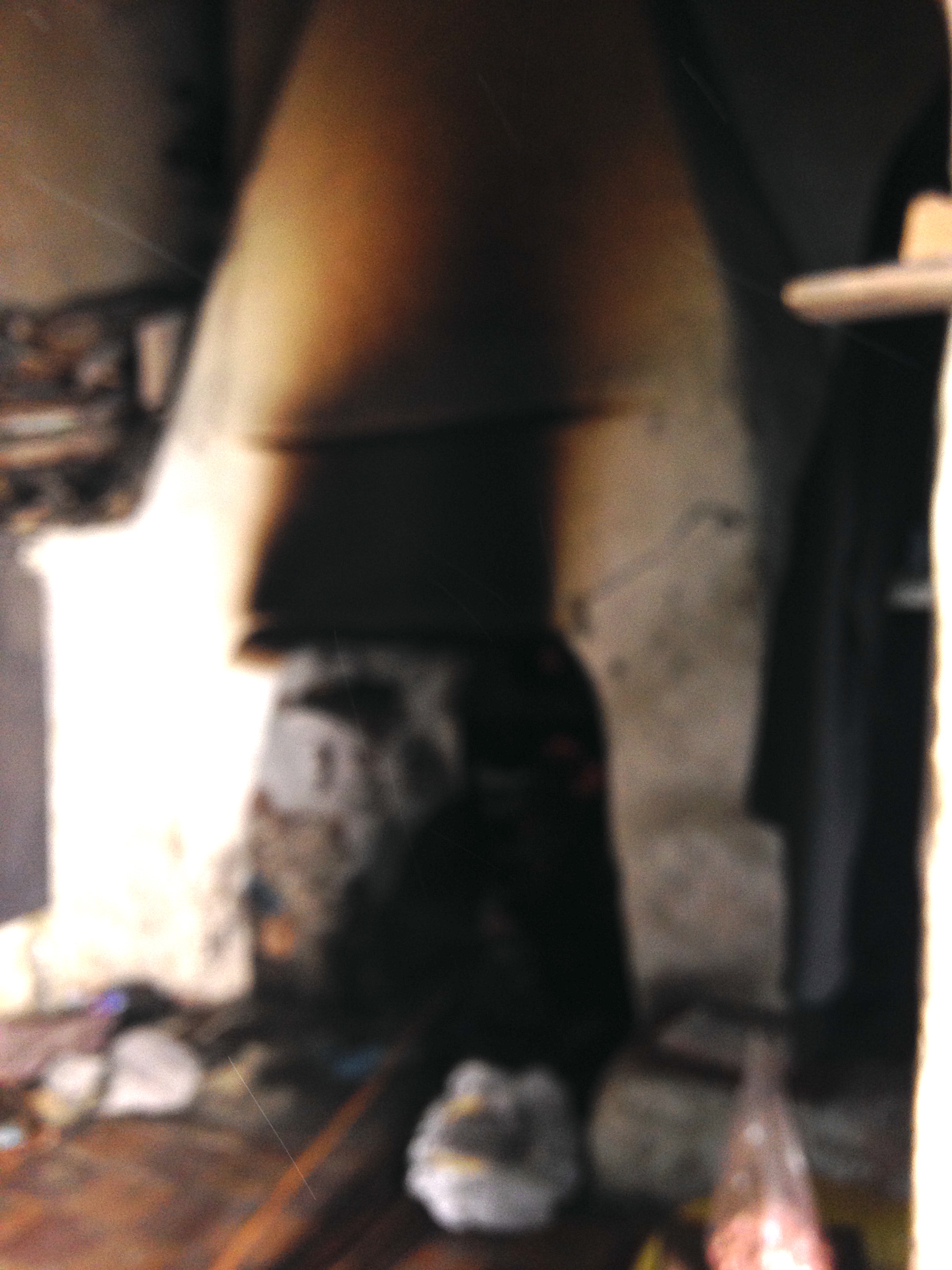 It was low and, as far as I recall, there was no door to open. I had to stoop to pass through the arch and step down into the smokey and blackened cave of a room. My eyes could not make out very much in the enveloping darkness. Our guide chatted to a dismembered voice that emanated from a raging fire set part way up a wall.